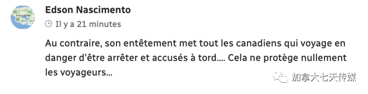 正好相反,他的固执使所有在外旅行的加拿大人都有被逮捕和被错误指控的危险……这根本无助于保护旅行者……
